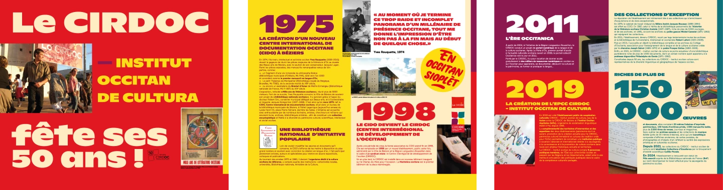À l'occasion de son anniversaire, le Cirdòc nous a confié la réalisation de l'habillage graphique extérieur de sa médiathèque à Béziers.